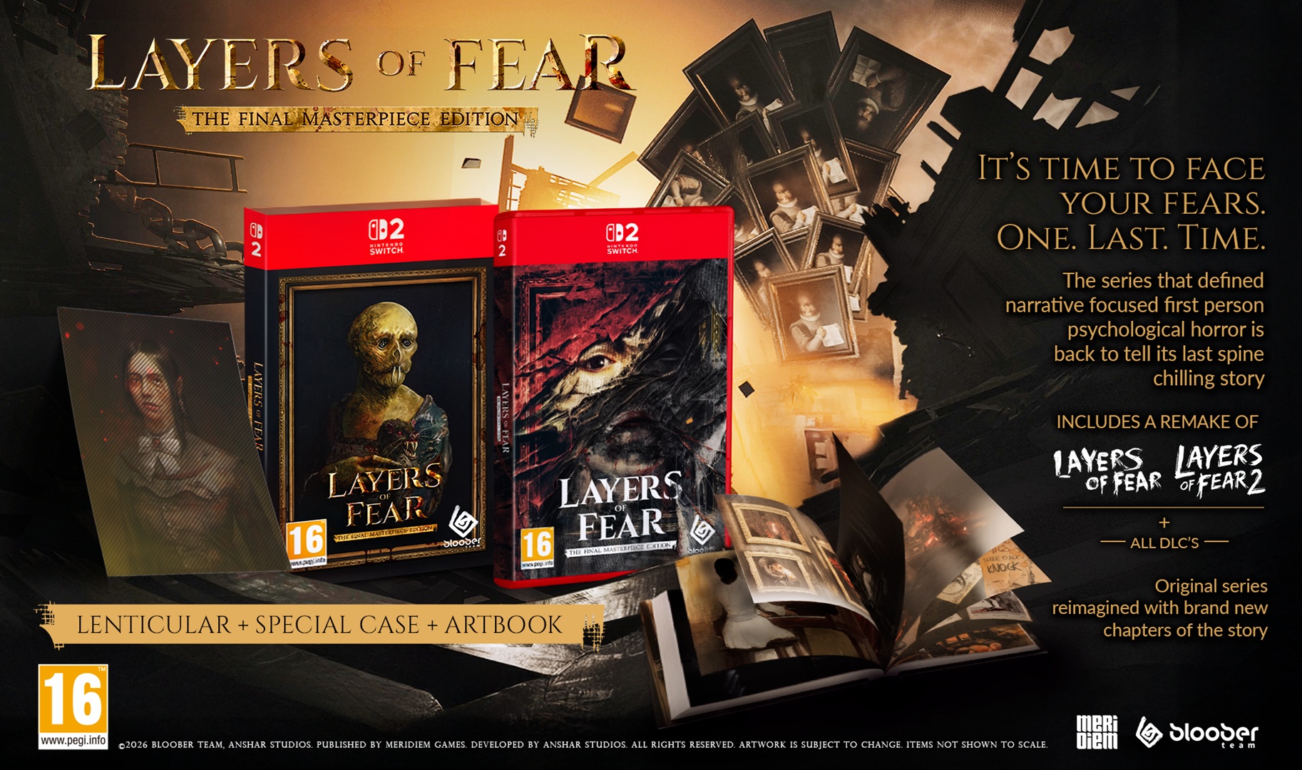 Meridiem è lieta di annunciare la pubblicazione di Layers of Fear – The Final Masterpiece Edition, una raccolta che include Layers of Fear, Layers of Fear 2 e tutti i DLC pubblicati, insieme a nuovi capitoli che uniscono tutte le storie in un unico, inquietante incubo. Sviluppata e pubblicata digitalmente da Bloober Team, Layers of Fear – The Final Masterpiece Edition sarà disponibile in formato fisico per Nintendo Switch 2 a partire dal 18 settembre 2026.