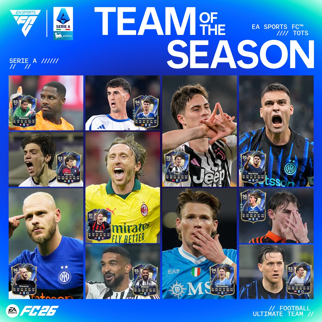 Con l'avvicinarsi della conclusione della stagione calcistica italiana, i fan di EA SPORTS FC™ 26 e EA SPORTS FC™ Mobile celebrano i protagonisti più brillanti all’interno deI Team of the Season ufficiale della Serie A.