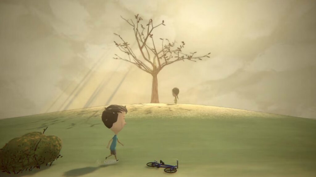 Dal punto di vista del gameplay, The Day I Became a Bird è volutamente essenziale. Le interazioni sono minime, quasi dei piccoli quick time event nascosti dentro gesti quotidiani: raccogliere una piuma, sistemare un pezzo di cartone, pedalare, osservare. Non c’è sfida, non c’è complessità, e non è un difetto. È una scelta precisa, perché il gioco non vuole distrarre, non vuole mettere ostacoli tra il giocatore e la storia. Ogni azione serve solo a far avanzare il racconto, come voltare pagina in un libro. È un’esperienza che si vive più con il cuore che con le mani, e funziona proprio perché non pretende di essere altro. A volte sembra quasi di essere seduti accanto a Frank, a guardarlo mentre prova a capire come si fa a piacere a qualcuno, con quella determinazione un po’ buffa che appartiene solo ai bambini.