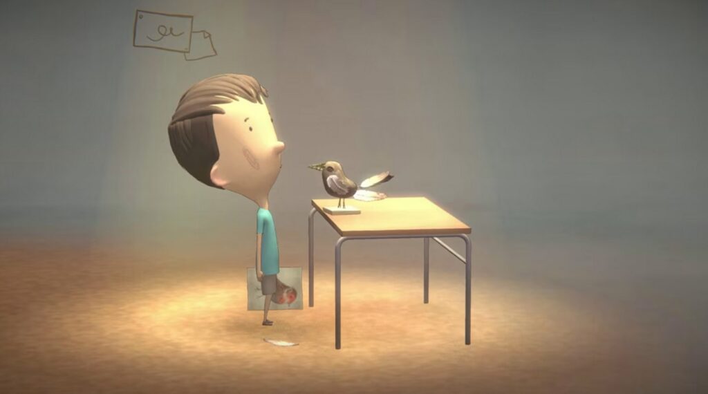 The Day I Became a Bird è uno di quei giochi che potremmo definire una fiaba letta a bassa voce, magari prima di dormire. Non stiamo parlando di un videogioco tradizionale, ma di un piccolo racconto interattivo, quasi un ricordo d’infanzia che prende forma sullo schermo. La storia di Frank, un bambino timido che scopre il primo amore per Sylvia, è raccontata con una sincerità e una tenerezza disarmante. Non c’è ironia, non c’è cinismo, solo quella goffaggine assoluta che appartiene ai sentimenti vissuti per la prima volta. Sylvia è affascinata dal mondo dei volatili, li osserva e li disegna come fossero parte del suo piccolo universo. Frank, per avvicinarsi a lei, decide di trasformarsi in qualcosa che possa farlo notare, e questa idea, così assurda e così logica allo stesso tempo, diventa il cuore pulsante dell’esperienza.