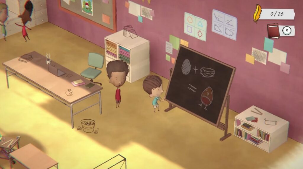 Il gioco si muove con un ritmo lento e morbido, e ogni scena sembra davvero un’illustrazione che prende vita. Le ambientazioni ricordano le pagine di un libro illustrato: colori caldi, linee morbide, un’atmosfera sospesa tra realtà e immaginazione. Si attraversano giornate semplici, fatte di scuola, parchi, biciclette lasciate sull’erba, piccoli oggetti raccolti per costruire qualcosa di importante. Non c’è mai fretta, e non c’è mai la sensazione di dover “fare” qualcosa per forza. Si segue Frank, si osserva il suo mondo, si respira la sua emozione. E più si va avanti, più ci si accorge che il gioco non vuole raccontare solo una cotta infantile, ma quel modo tutto speciale che i bambini hanno di trasformare la realtà in qualcosa di magico, di piegarla ai propri desideri senza mai perdere la purezza dello sguardo.